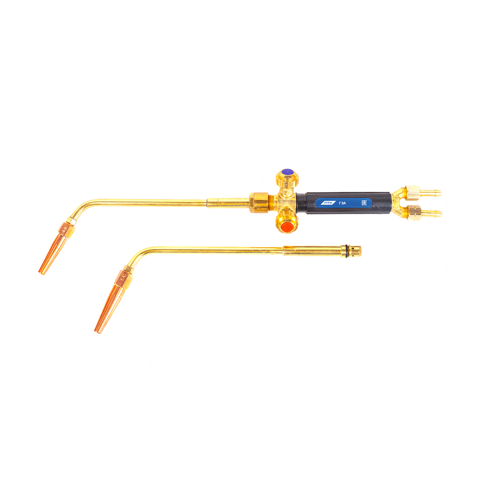 Инжекторная горелка для сварки металлов толщиной до 11 мм. Укомплектована латунными сварочными наконечниками с медными мундштуками № 4А и 5А.