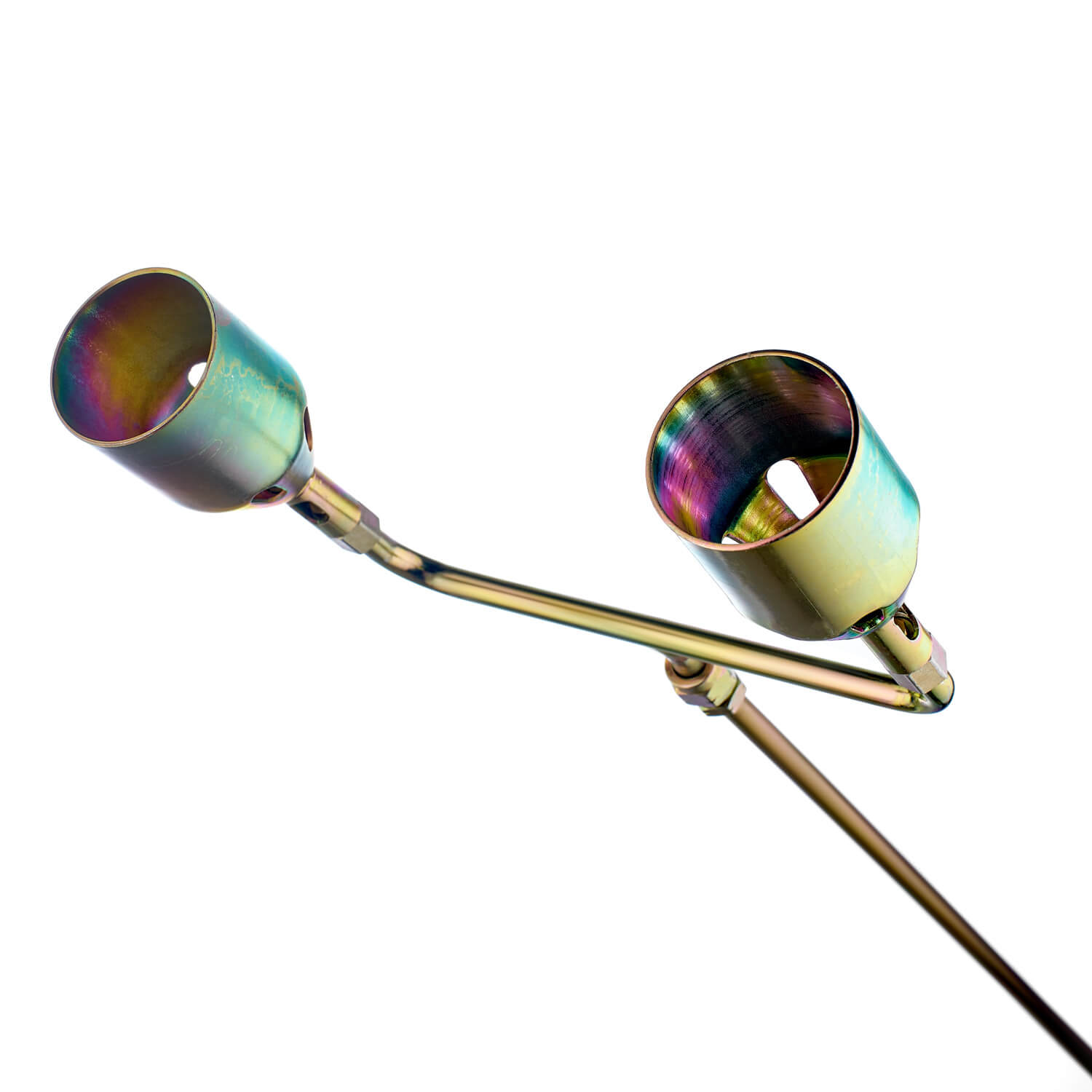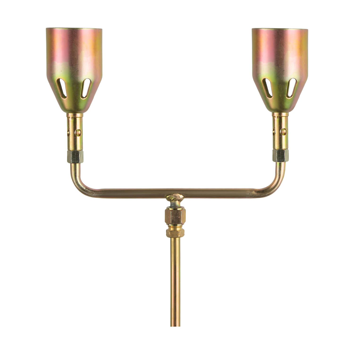 Горелка ручная газовоздушная пропановая с двумя колбами диаметром 50 мм для нагрева изделий и заготовок из черных и цветных металлов. Горелка с рычагом подачи горючего газа. Длина горелки 970 мм.