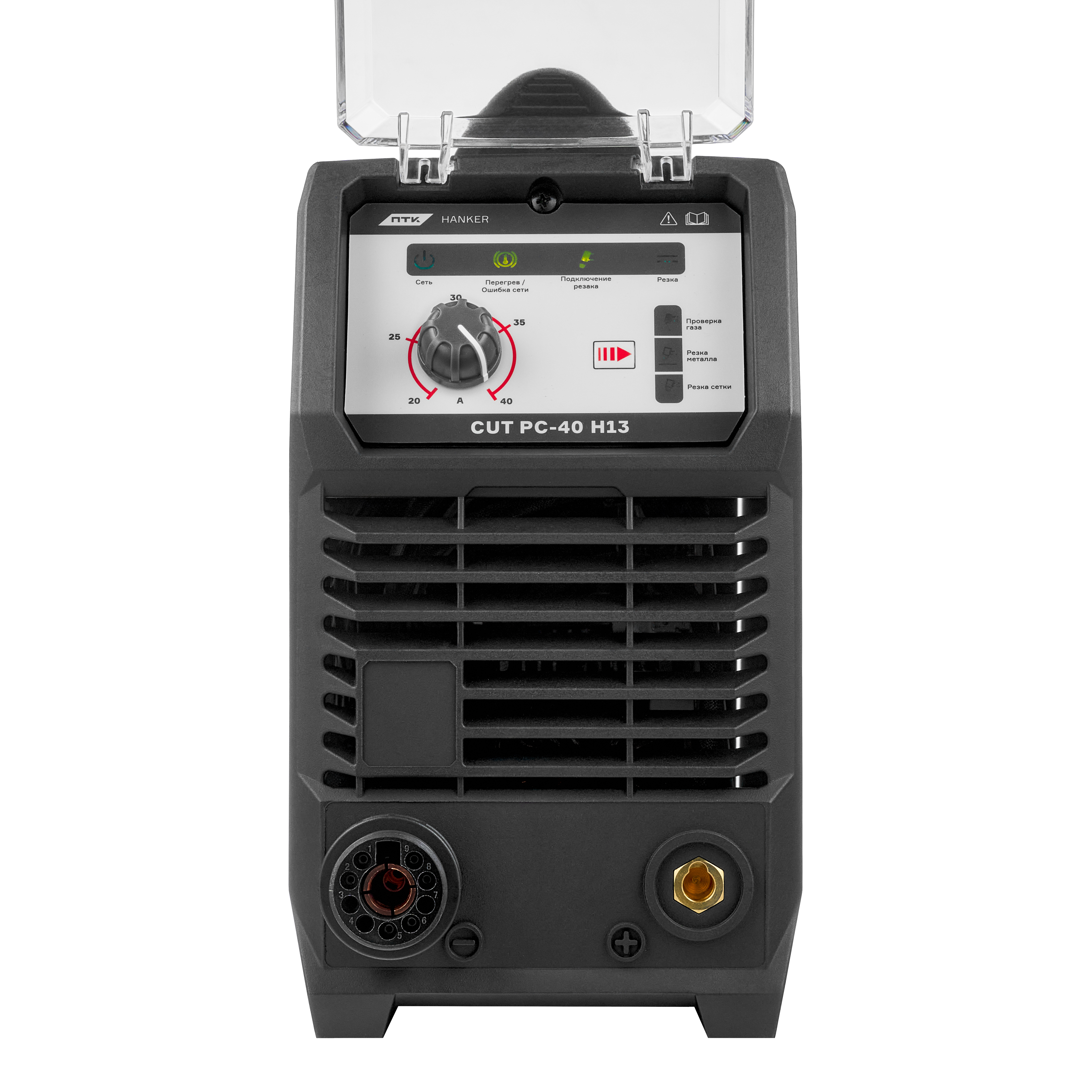 Универсальный промышленный аппарат воздушно-плазменной резки металлов ПТК HANKER CUT PC-40 H13 предназначен для резки и раскроя нержавеющей и углеродистой стали, оцинкованной стали, меди, алюминия и других цветных металлов.Аппарат сконструирован на основе IGBT транзисторов, что обеспечивает стабильную работу оборудования, высокую надежность и эффективность при длительной эксплуатации. Плазморез отличается низким уровнем шума во время работы и устойчивой дугой.ПТК HANKER CUT PC-40 H13 обеспечивает качественный тонкий рез без деформации и коробления металла. Максимальная толщина разрезаемого металла составляет 25 мм, что делает аппарат оптимальным решением для производственных задач, ремонтных работ и мастерских.Оборудование оснащено встроенным фильтром-регулятором, что позволяет быстро подготовить оборудование к работе и точно настроить рабочее давление воздуха. Обратите внимание, что давление сжатого воздуха должно быть постоянным. Не допускается снижение показателя ниже 0,4 МПа.Особенности ПТК HANKER CUT PC-40 H13:Аппарат с пневматическим поджигом дуги, которое обеспечивает минимальное количество электромагнитных помех и стабильный процесс резки.Максимальная толщина разрезаемого металла до 25 мм.Система пилотной дуги (Pilot) обеспечивает легкий поджиг без контакта с деталью и позволяет работать по материалам с ржавчиной, краской или окалиной.Наличие функции резки сетки, позволяющей эффективно работать с металлическими решетками и перфорированными материалами.Автоматическое отключение пилотной дуги после зажигания основной дуги с возможностью повторного поджига, что упрощает резку сетки и перфорированных заготовок.Постпродувка плазматрона воздухом после резки, которая увеличивает срок службы расходных материалов и плазменного резака.Индикатор подключения плазменного резака для контроля правильности подключения оборудования.Автоматическая защита от перегрева и перегрузки по току.Внешний фильтр-регулятор, обеспечивающий точную настройку рабочего давления воздуха.Комплектация аппарата:Аппарат воздушно-плазменной резки металлов в сборе с фильтром-регулятором – 1 шт.Плазменный резак IPT 40 с рожковой насадкой – 1 шт.Клемма заземления – 1 шт.Газовый шланг полиуретановый – 1 шт.Хомут – 2 шт.Комплект ЗИП и расходных материалов – 1 наборРуководство по эксплуатации – 1 шт.