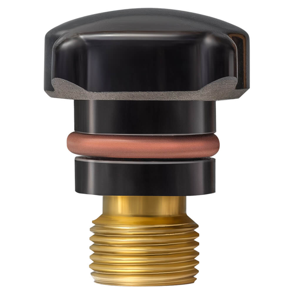 Заглушка короткая закрывает выходящий из аргонодуговой горелки TIG вольфрамовый электрод. Заглушка изготовлена из ударопрочного пластика. Медная резьба и резиновое кольцо-уплотнитель позволят плотно зафиксировать заглушку в головке аргонодуговой горелки. Подходит для горелок серий 17/18/26.
