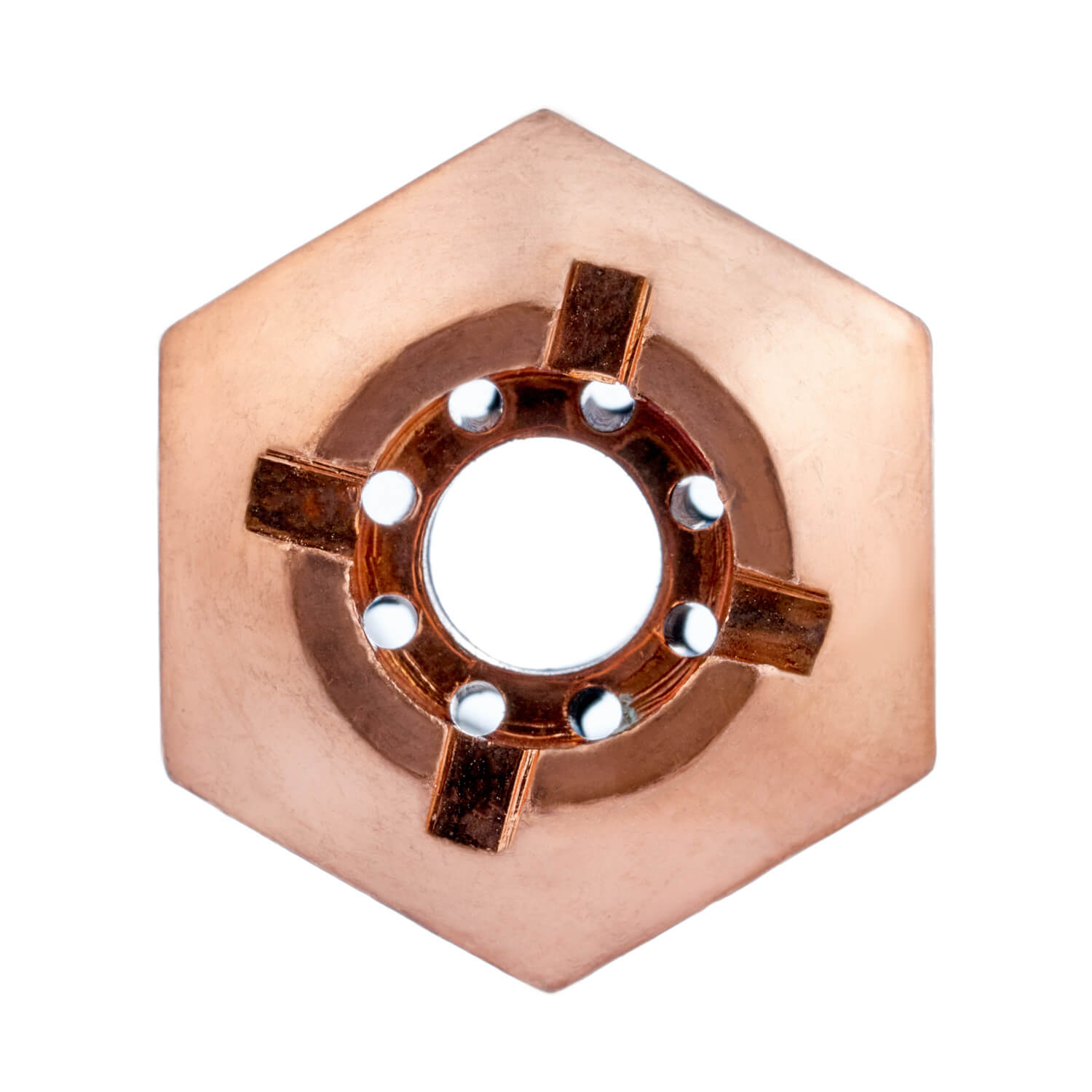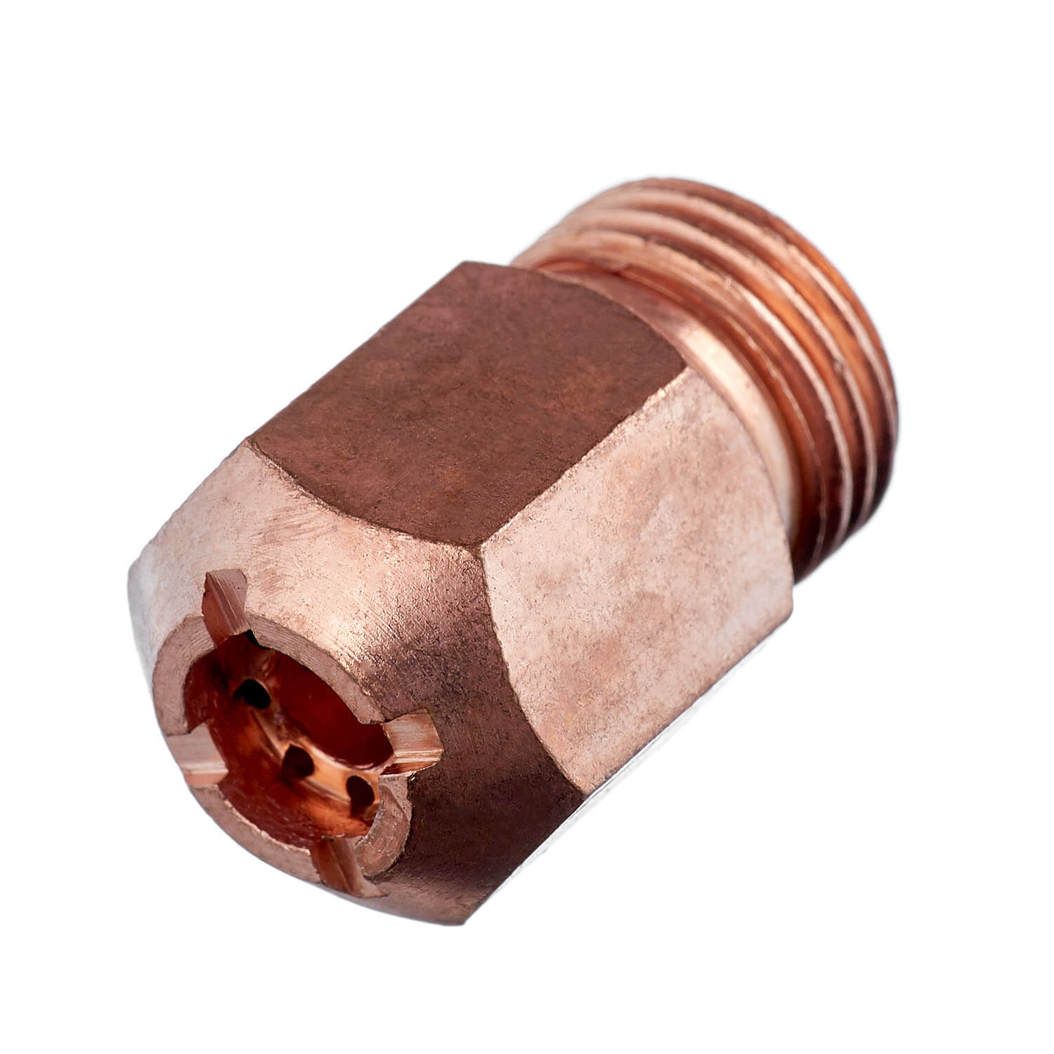 Медный наружный мундштук для резака керосинового РК-02 (тип «Луч»). Мундштук не имеет маркировки, а толщина разрезаемого металла зависит от установленного внутреннего мундштука.