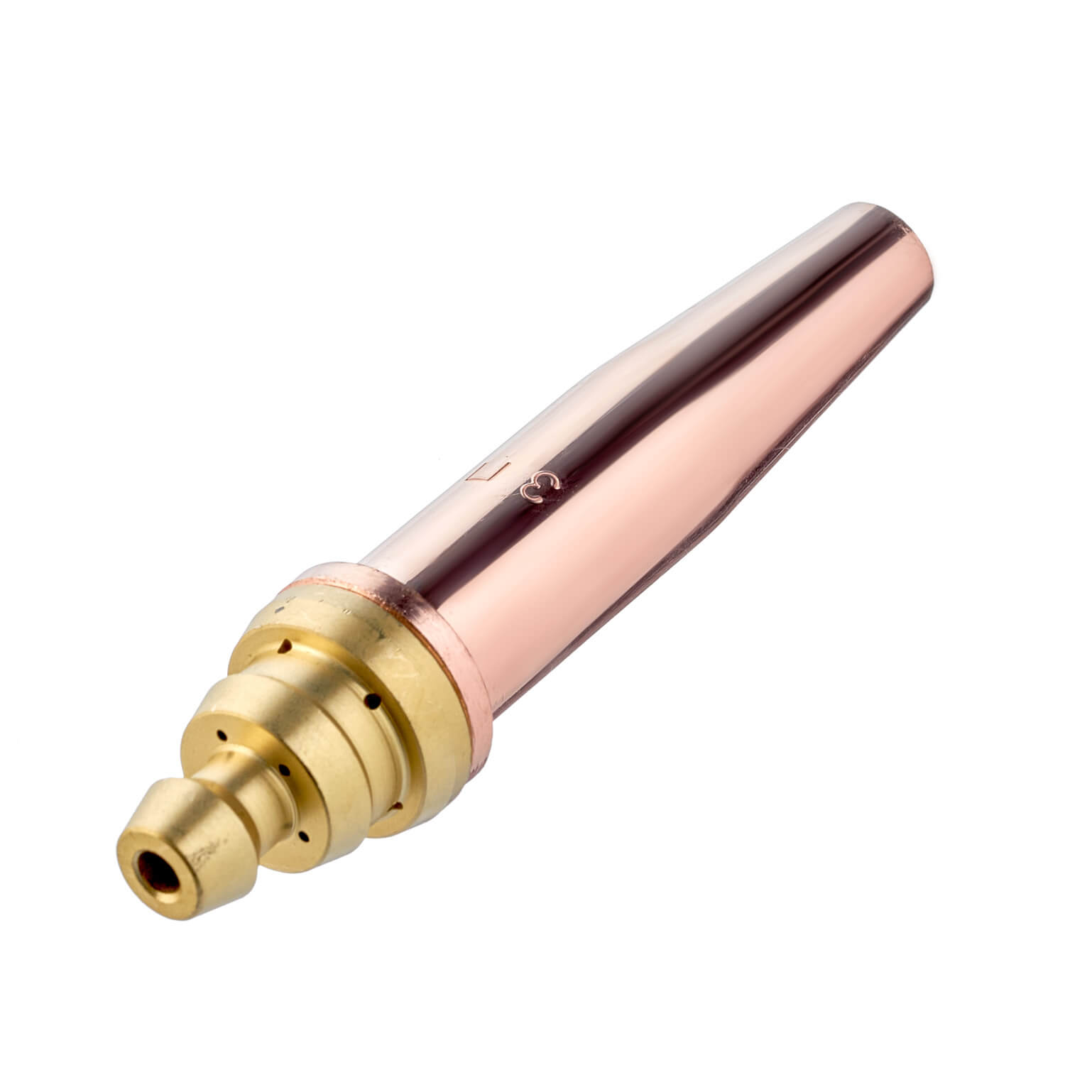 Разборный пропановый мундштук №3П (PNME 9) к 3-х трубным резакам внутрисоплового смешения газов Р3-300 и Р3-345. Толщина разрезаемого металла 30–50 мм. Мундштук с широкими шлицами. Газосмесительный мундштук имеет три запорных пояска, которые предотвращают перетечку газов и обеспечивают смешение газов непосредственно в мундштуке, обеспечивая безопасное использование.