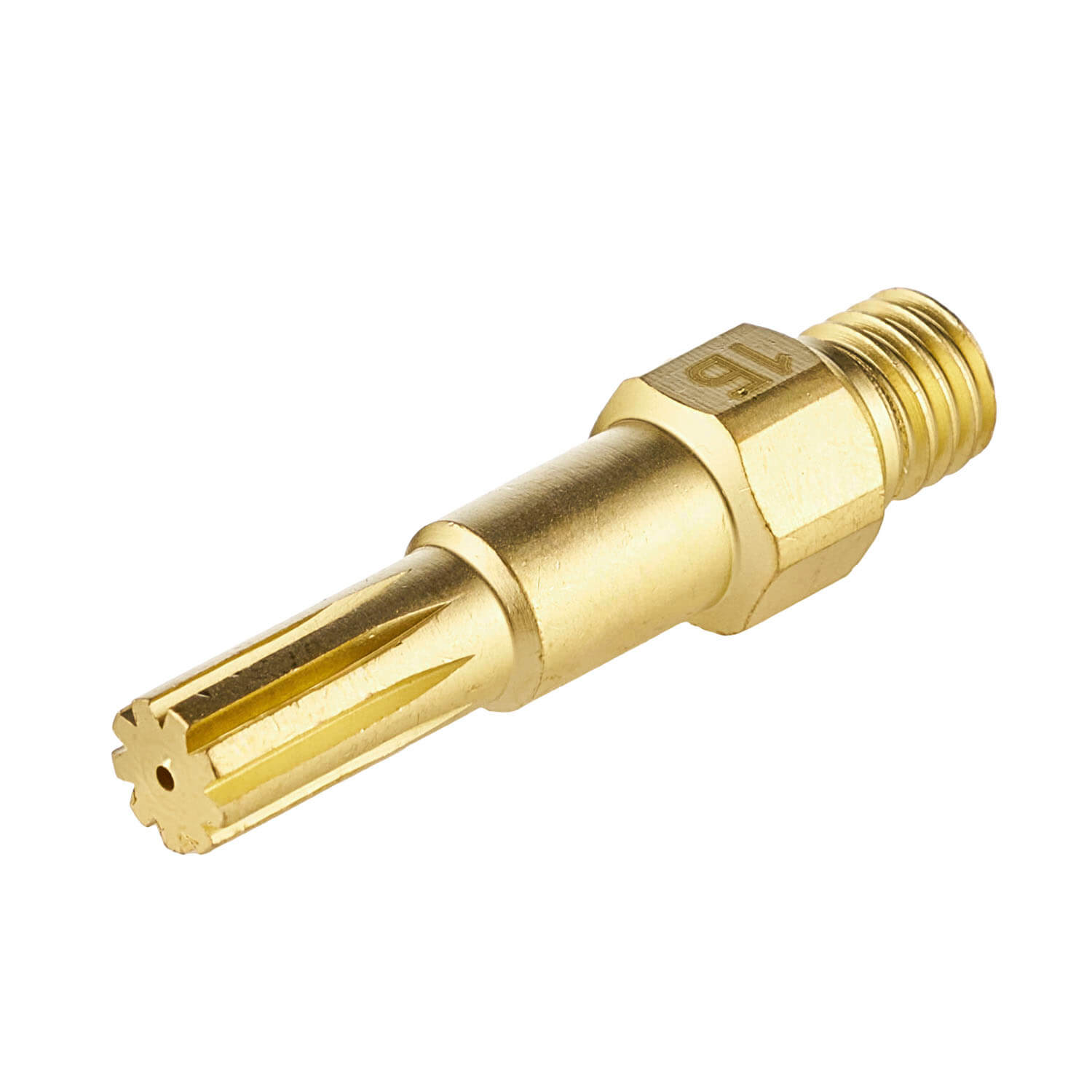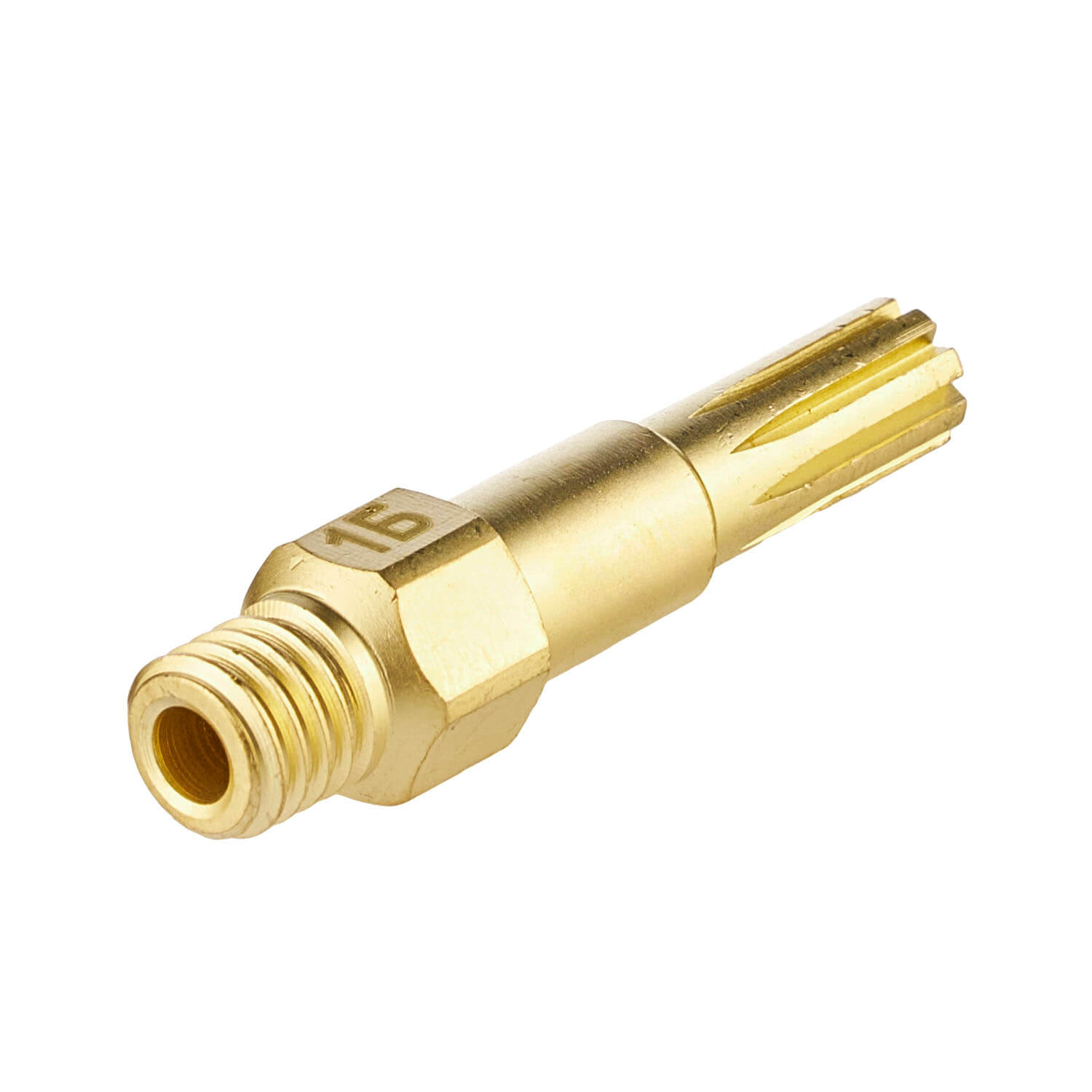 Внутренний мундштук №1Б для жидкотопливного бензинового резака РБ-300. Толщина разрезаемого металла 8–15 мм. Мундштук присоединяется (вкручивается) в головку резака при помощи резьбы М8х1. На цилиндрическую часть мундштука устанавливается катушка.