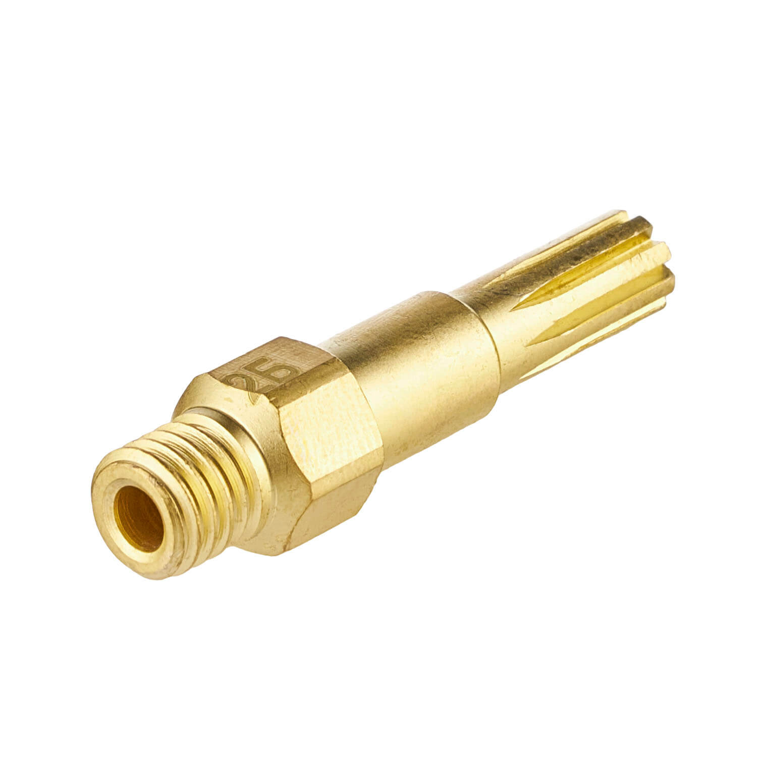Внутренний мундштук №2Б для жидкотопливного бензинового резака РБ-300. Толщина разрезаемого металла 15–30 мм. Мундштук присоединяется (вкручивается) в головку резака при помощи резьбы М8х1. На цилиндрическую часть мундштука устанавливается катушка.