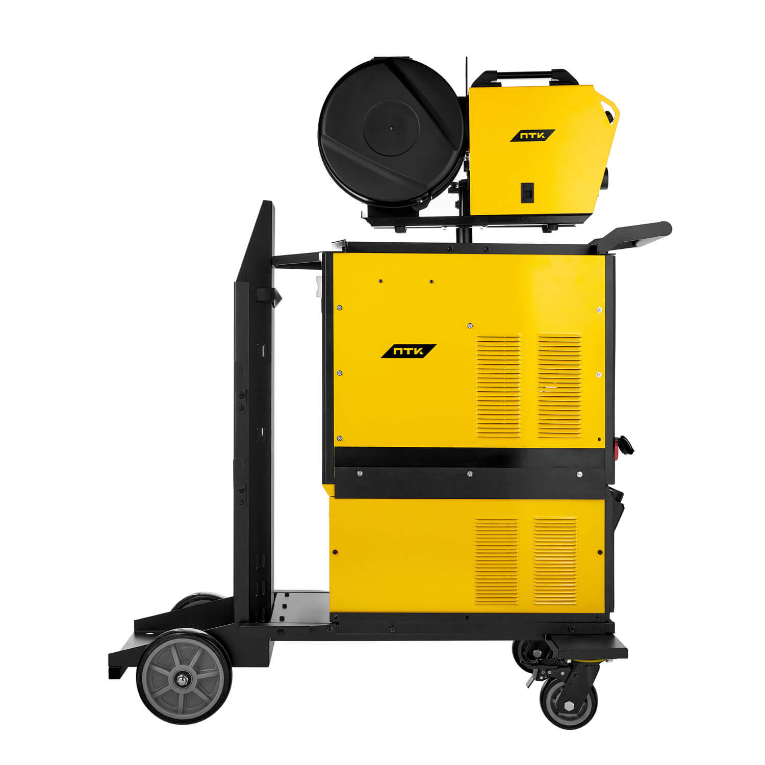 ПТК RILON MIG 500 DFW – новый сварочный полуавтомат с продолжительностью включения 100% на максимальном токе.Аппарат произведен на заводе RILAND с использованием высококачественных мощных IGBT модулей, КПД увеличено до 90%. Выходная мощность источника регулируется при помощи широтно-импульсной модуляции (ШИМ, PWM).Оборудование с синергетическими и ручными настройками управления, которое можно использовать для сварки углеродистой, нержавеющей стали и других металлов в углекислоте и в сварочной смеси.Отличительная особенность аппарата ПТК RILON MIG 500 DFW – водяное охлаждение сварочной горелки и наличие сборной тележки для перемещения комплекта оборудования и газового баллона.Управление функционалом и настройками аппарата происходит при помощи многофункциональной панели управления с возможностью регулировок силы сварочного тока и сварочного напряжения на источнике питания и при помощи панели управления на выносном подающем механизме.Аппарат полуавтоматической сварки можно подключить к компьютеру для обновления программного обеспечения через компьютерный порт DE-9.Особенности ПТК RILON MIG 500 DFW:Синергетические и ручные настройки управления. В синергетическом режиме возможны регулировки величины сварочного тока, индуктивности, длины дуги и скорости подачи проволоки. В ручном режиме – сварочное напряжение, индуктивность и скорость подачи сварочной проволоки.Функция выбора газа. Сварка в углекислоте и в сварочной смеси.Функция выбора типа проволоки Fe и CrNi. Наличие функции сварки порошковой проволокой (Fluх) для сварки без использования защитного газа. Для сварочного материала Fe возможен выбор защитного газа между углекислотой и газовой смесью. Для сварочного материала CrNi возможна сварка только в газовой смеси.Наличие слотов памяти, которые отображают настройки сохраненных параметров сварки.Функция протяжки проволоки вперед-назад без газа и функция продувки сварочной горелки газом.4 режима работы сварочной горелки – 2Т/2TS/4ТS/SPOT.Подающий механизм выносного типа. 4-х роликовый металлический механизм подачи проволоки. Используется сварочная проволока диаметром от 1,0 до 1,6 мм. Можно установить катушку с проволокой весом до 18 кг (D300) и регулировать скорость подачи проволоки от 1,5 до 24 м/мин.Функция выбора диаметра сварочной проволоки.Дополнительная функция ручной дуговой сварки MMA. Возможно использовать электроды диаметром от 1,5 до 6,0 мм.Наличие блока водяного охлаждения, объем бака – 8 литров.Сборная тележка для перемещения комплекта оборудования и газового баллона объемом до 40 литров. Тележка оснащена передними вращающимися колесами с тормозом и высокими устойчивыми задними колесами.5 лет сервисной гарантии.Комплектация ПТК RILON MIG 500 DFW:Инверторный аппарат полуавтоматической сварки – 1 шт.Выносной подающий механизм – 1 шт.Блок жидкостного охлаждения – 1 шт.Тележка-платформа – 1 шт.Кабель-пакет – 1 шт.Полуавтоматическая горелка MIG 500 серии с водяным охлаждением – 1 шт.Клемма заземления – 1 шт.Ролики подающего механизма 37х19х12 V 1,0–1,2 мм (установлены в механизм подачи проволоки) – 2 шт.Ролики подающего механизма 37х19х12 V 1,2–1,6 мм – 2 шт.Ключ универсальный – 1 шт.Ключ шестигранный – 1 шт.Хомут – 4 шт.ЗИП для сборки тележки-платформы – 1 шт.Руководство по эксплуатации – 1 шт.