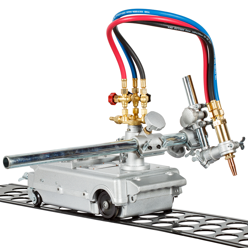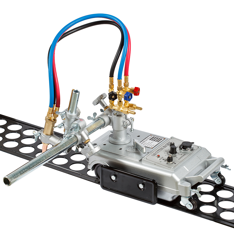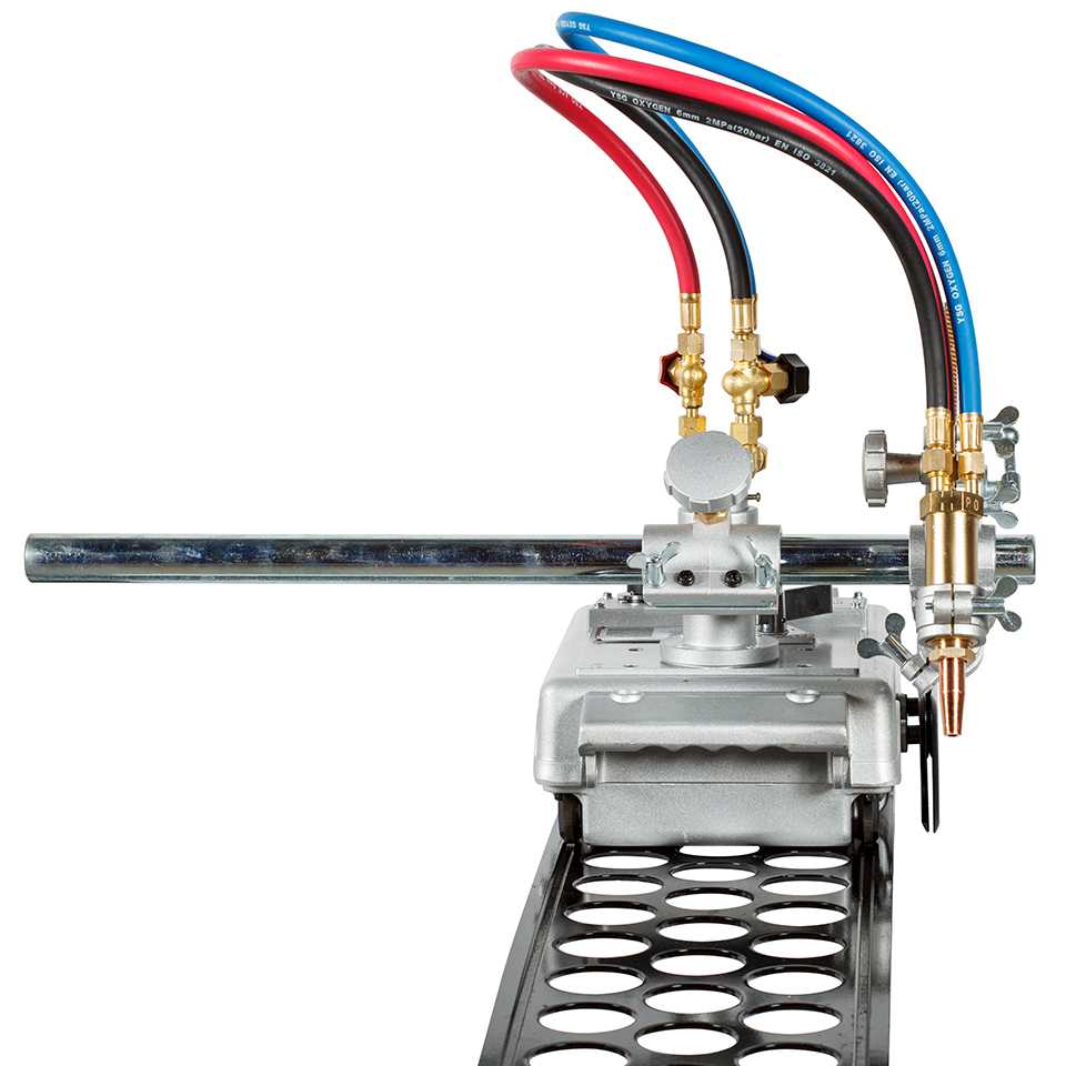 Машина оснащена 1 резаком для прямолинейного реза листового проката низкоуглеродистых сталей толщиной до 100 мм. В комплект поставки входит направляющий рельс.
