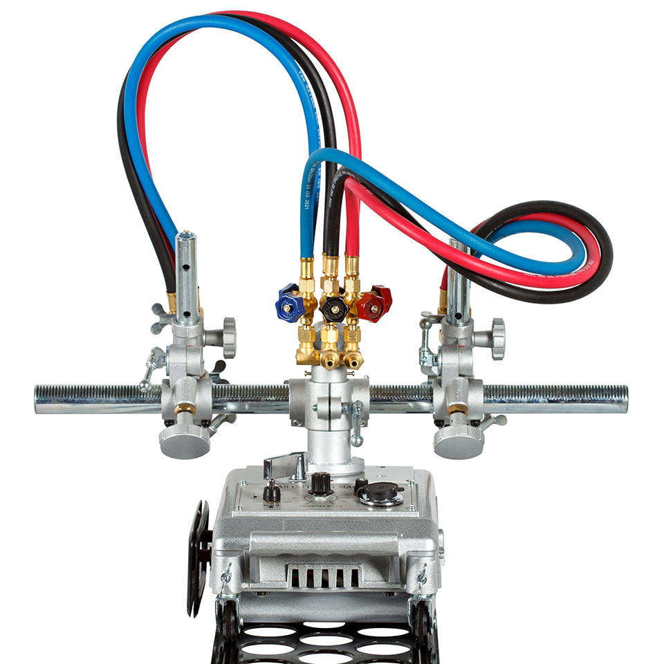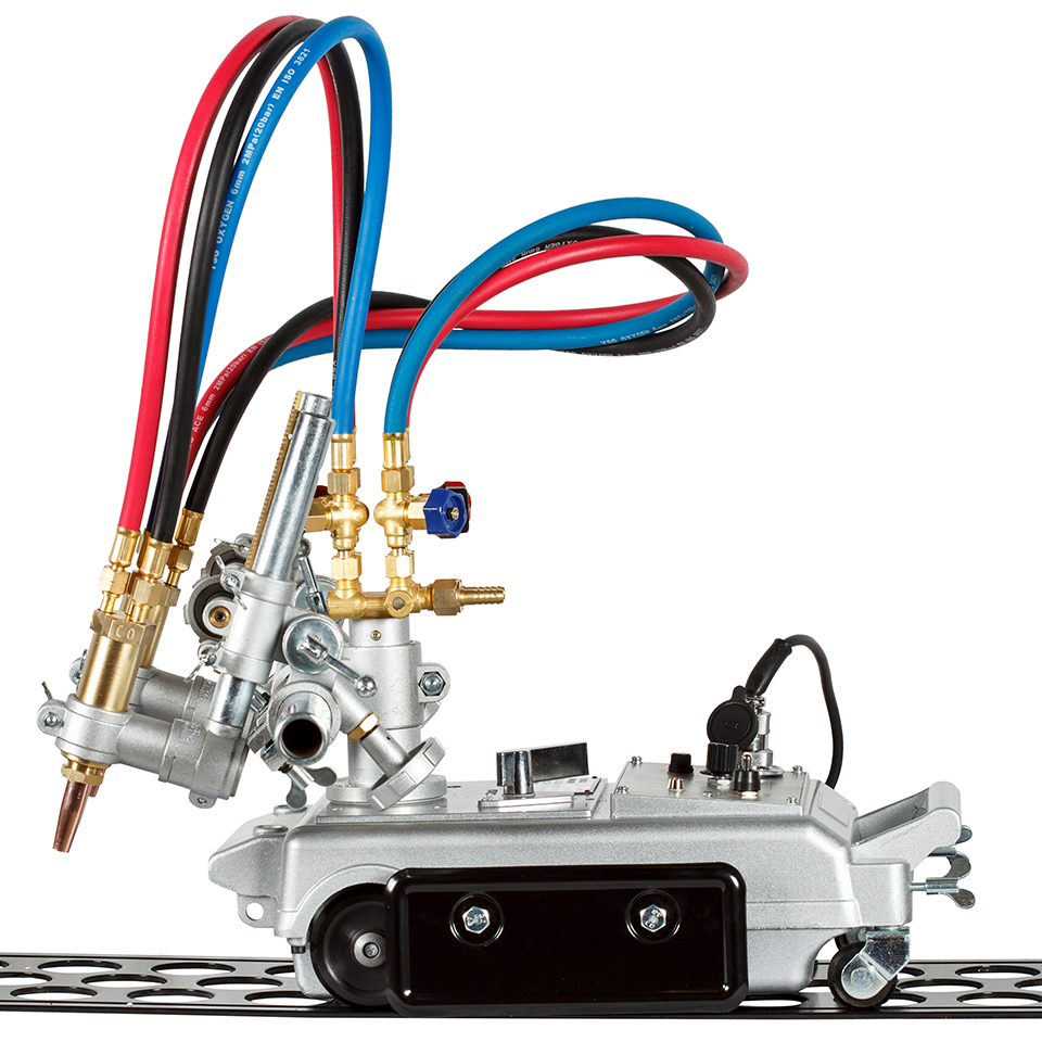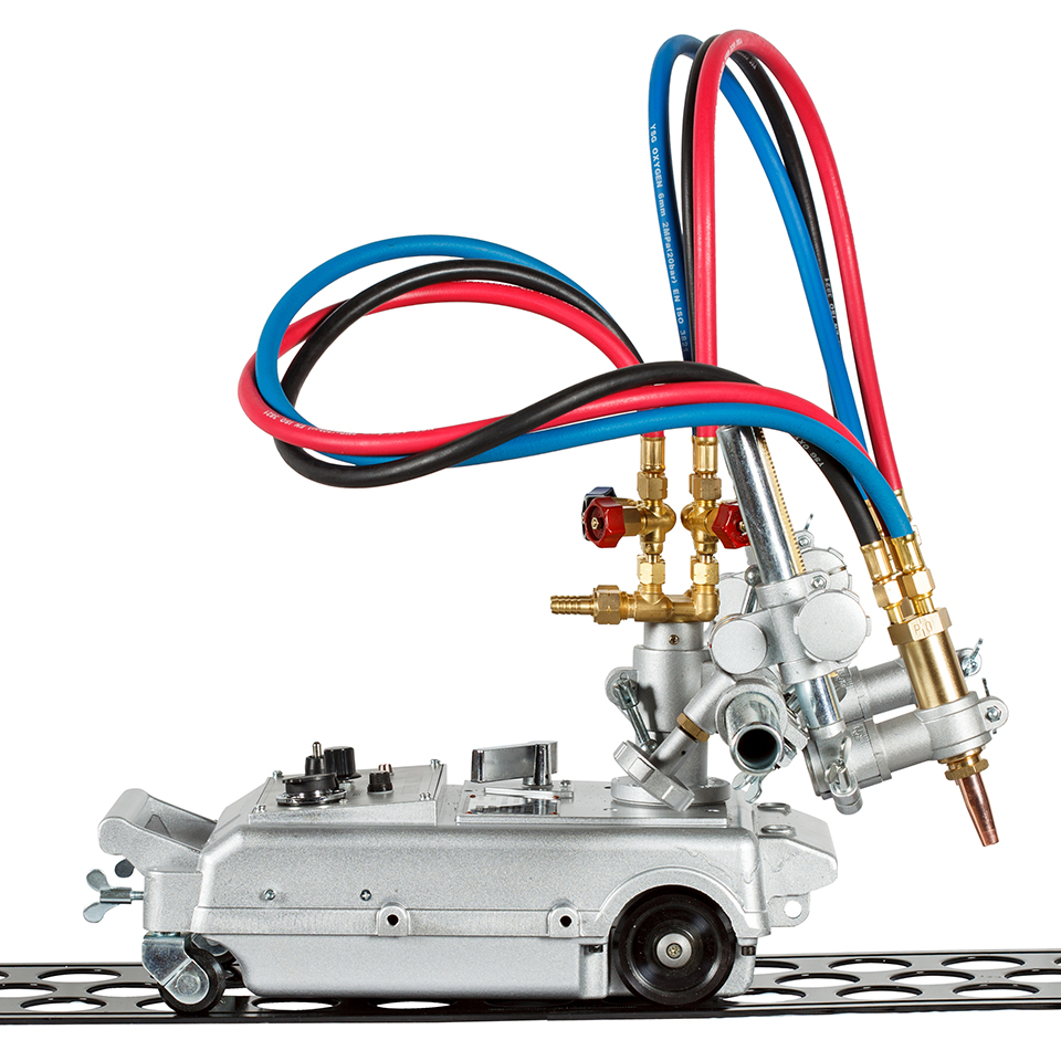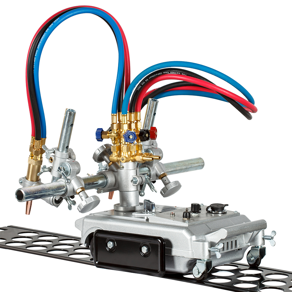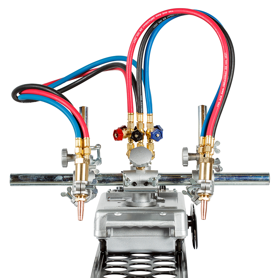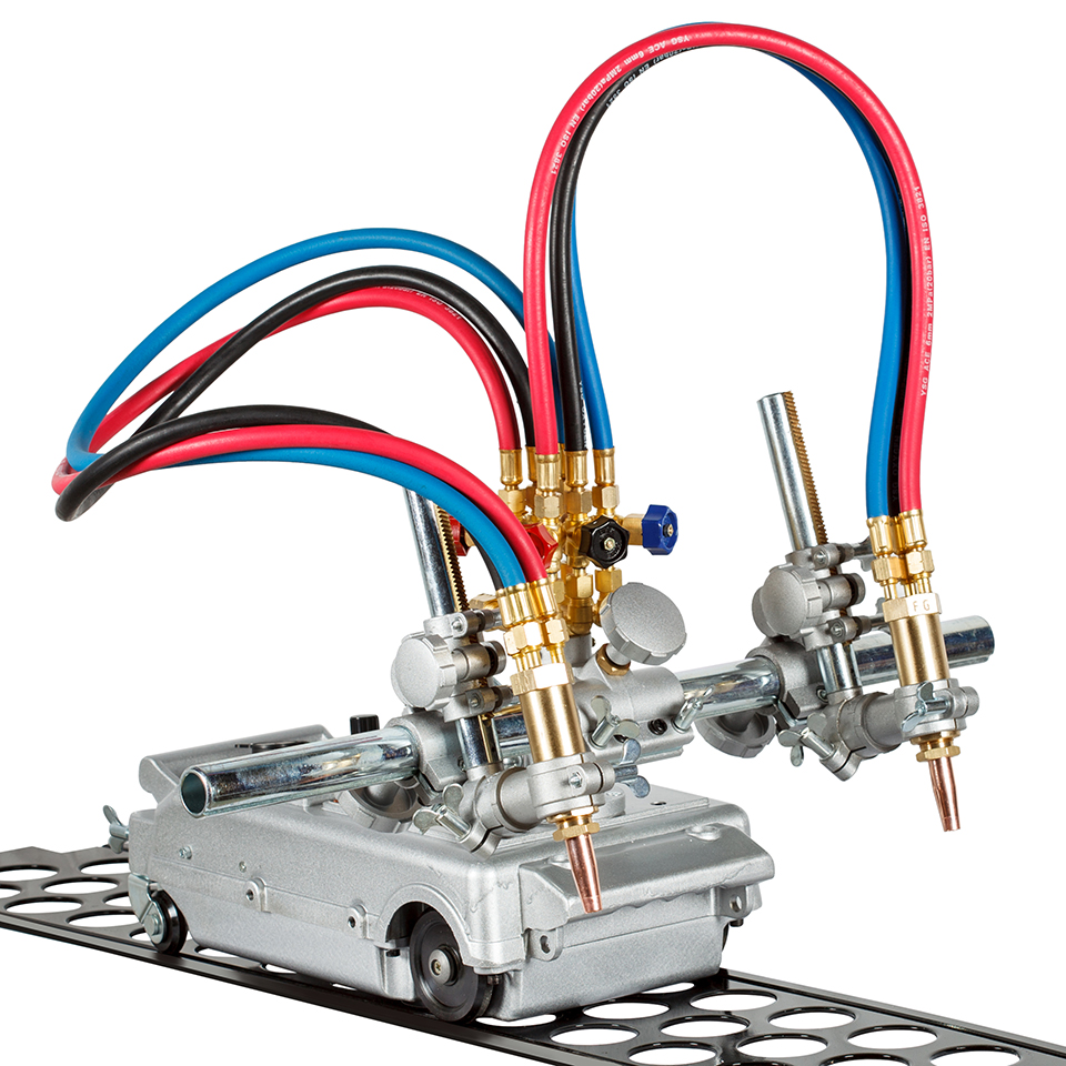 Машина оснащена 2 резаками для прямолинейного реза листового проката низкоуглеродистых сталей толщиной до 100 мм. В комплект поставки входит направляющий рельс.
