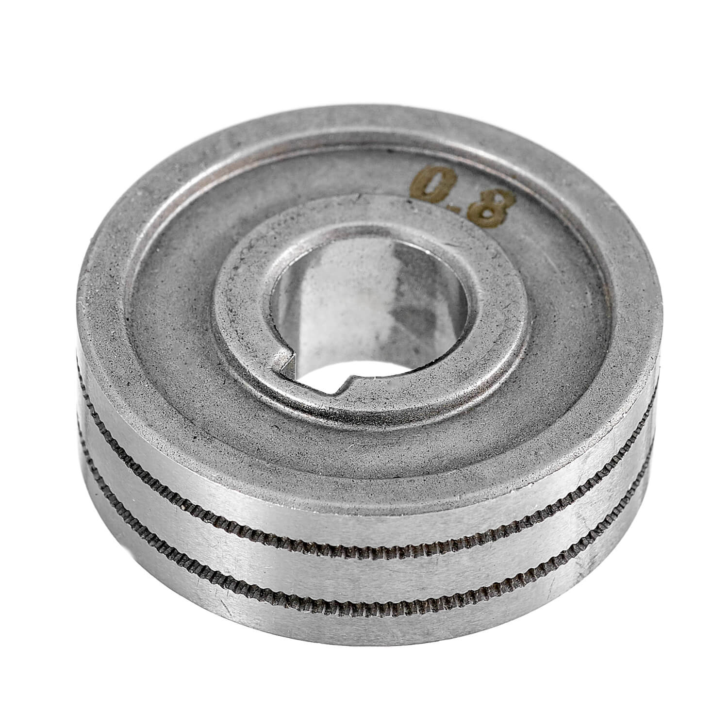 Ролик подающий для порошковой проволоки диаметром 0,8–0,9 мм. K-образная форма канавки. Габариты ролика 30х10х10. Подходит для аппаратов полуавтоматической сварки серий ПТК МАСТЕР MIG NF, МАСТЕР MIG SYN NF и ПТК RILON MIG GDM.