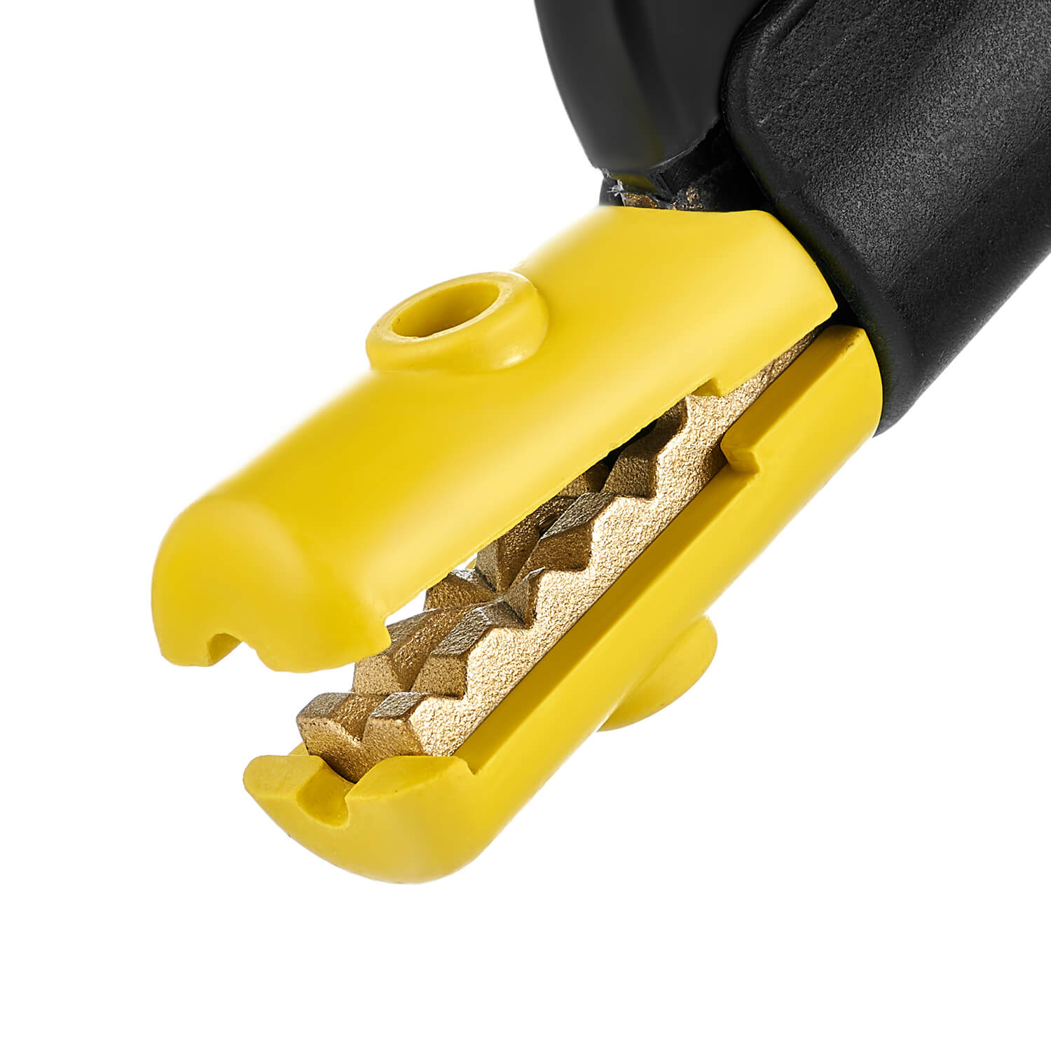 Латунный электрододержатель ЭД-50-2-I используется для фиксации электрода и подвода к нему сварочного тока величиной до 500А при ММА сварке. Держатель с пружинным зажимом и открытым типом головки. Фиксирует электроды в 4 положениях, где угол фиксации составляет 45°, 90°, 135°, 180°.