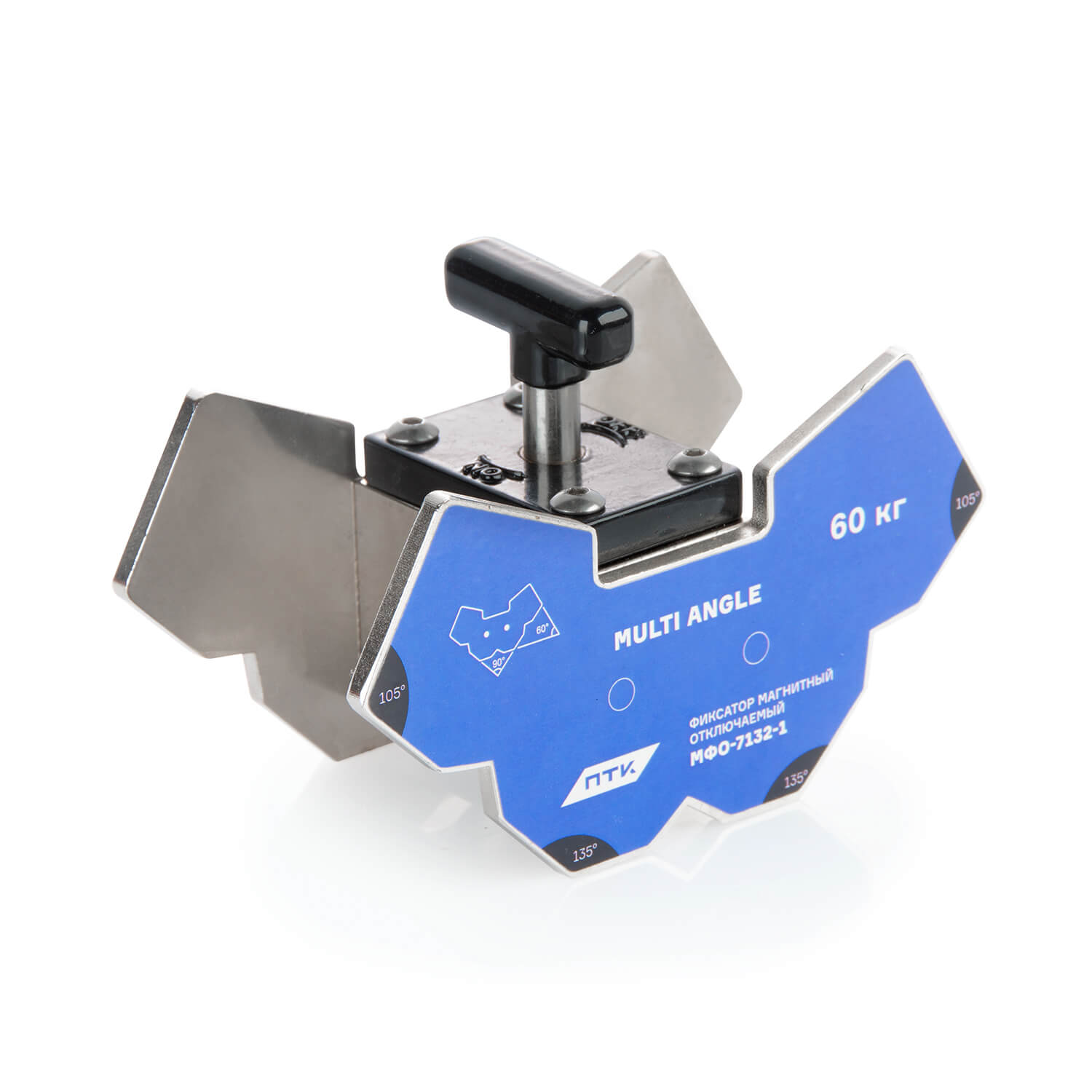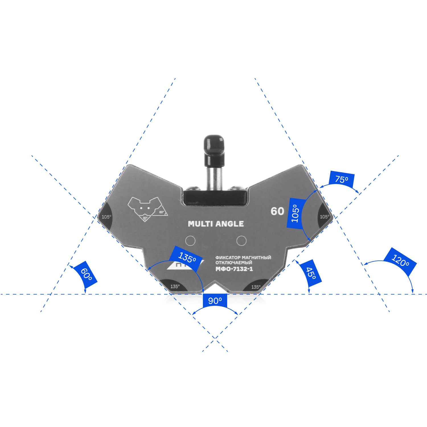 Фиксатор с неодимовым магнитом. Отключаемый фиксатор МФО-7132-1 MULTI ANGLE обладает особой мощностью притяжения и высокой стойкостью к размагничиванию. Максимальная масса удерживаемого изделия 60 кг. Крепится к плоским и круглым поверхностям. 7 вариаций углов выставления МФО.