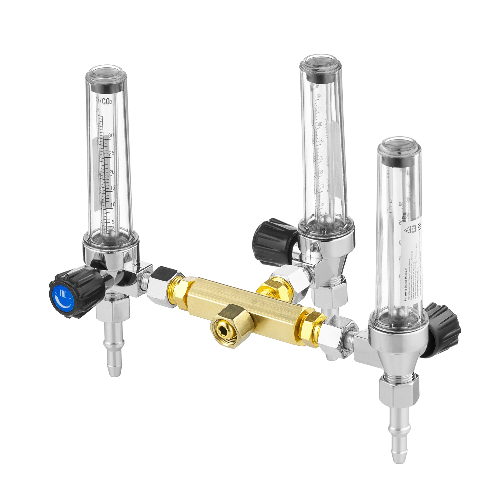 Газовый коллектор низкого давления КГ-3-02 предназначен для распределения газа от одного редуктора (регулятора расхода газов) на три потребителя. Оснащен тремя штуцерами, расположенными с трех сторон, что обеспечивает удобное подключение газовых линий в разных направлениях. Коллектор позволяет организовать индивидуальный расход газа на каждом выходе при использовании одинарных ротаметров. При необходимости возможен отбор газа через один, два или все три выхода одновременно. Коллектор выполнен из алюминия с анодным оксидированием.Важно! Ротаметры в комплект поставки не входят. Для работы с коллектором используются одинарные ротаметры (гайка M16х1,5), которые приобретаются отдельно. Коллектор КГ-3-02 подходит для работы со следующими газами:Кислород - от медицинского кислородного редуктора (для трех пациентов с разным расходом);Аргон - от аргонового редуктора (для трех сварочных постов TIG сварки);Углекислый газ (CO₂) - от углекислотного редуктора (для трех постов MIG сварки);Азот (сжатый воздух) - на три потребителя;Сварочные газовые смеси - от регулятора баллона на три сварочных поста.Комплектация:Коллектор газовый КГ-3-02 в сборе – 1 шт.