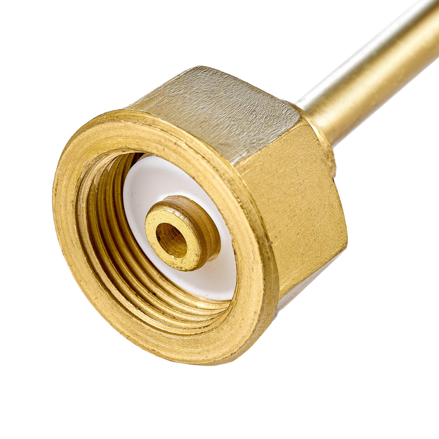 Устройство для перекачки газов из баллона объемом 40 литров в баллоны малого объема (до 10 литров). Устройство состоит из латунной трубки длиной 250 мм с накидными гайками G3/4–W21,8 и полиуретановыми прокладками.