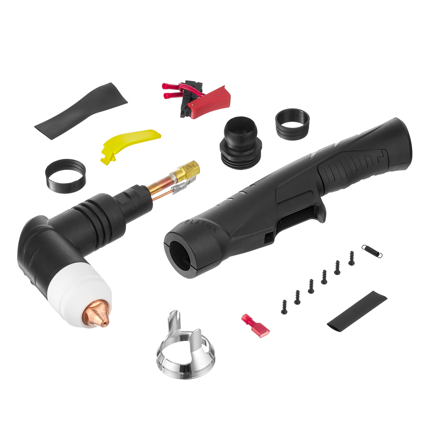 Комплектация:Головка плазмотрона CP 160 — 1 шт. Рукоятка — 1 шт. Насадка рожковая — 1 шт. Кнопка плазмотрона — 1 шт. Предохранительная скоба — 1 шт. Пружина скобы — 1 шт. Шарнир — 1 шт. Кольцо — 1 шт. Винты — 6 шт. Термоусадочная трубка — 2 шт.Уплотнитель — 1 шт. Клемма — 1 шт.