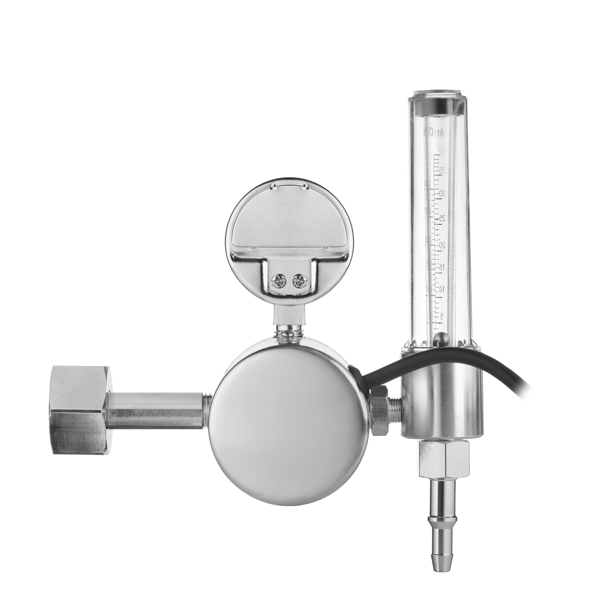 Универсальный регулятор расхода газа с поверенным манометром, подогревателем на 220 В и одним ротаметром. Регулятор предназначен для углекислоты и аргона. Алюминиевый корпус. Поставляется в комплекте с универсальным ниппелем.