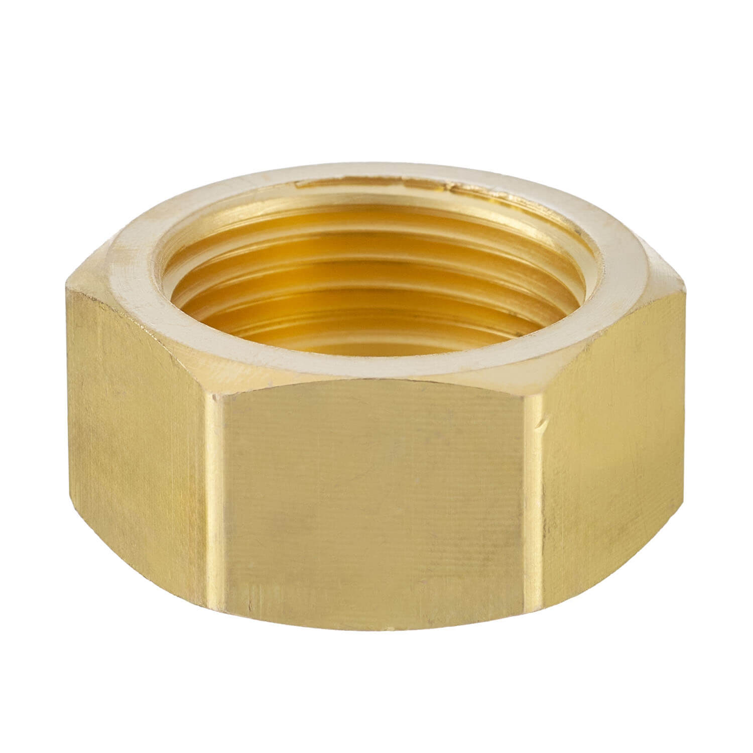 Латунная заглушка для вентиля кислородного ВК-94. Используется для герметизации-перекрытия доступа к боковому штуцеру с наружной цилиндрической резьбой G3/4-В. Внутри заглушки имеется уплотнительное полиамидное кольцо.