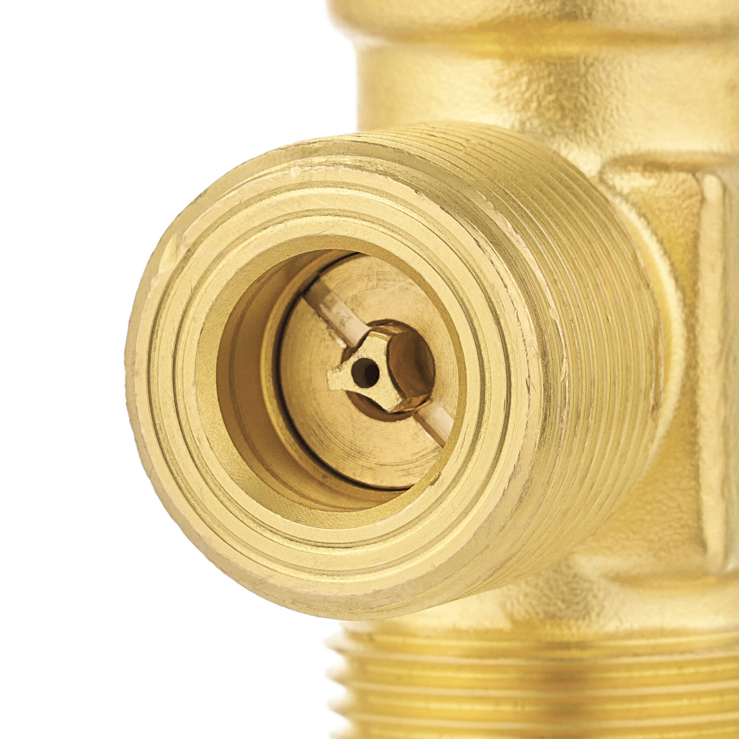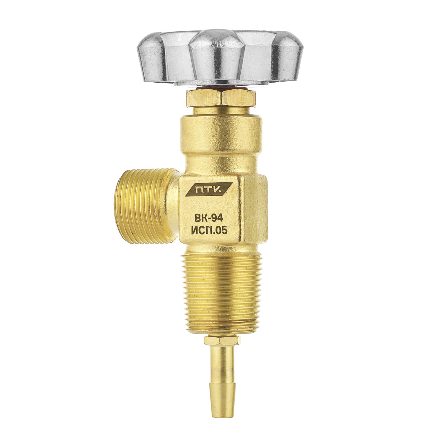 Вентиль баллонный ПТК ВК-94 (исполнение 05, клапан) применяется в качестве запорного устройства на кислородных баллонах различных емкостей для предотвращения утечки газа и регулирования подачи кислорода. Вентиль можно использовать для баллонов с сжатым воздухом, азотом и другими неагрессивными газами.В конструкции вентиля на выходе, установлен клапан с перепускным давлением до 1,0 Атм, для сохранения остаточного давления в баллоне при полной выработке. В комплекте с вентилем входит ниппель, установленный по резьбе на вентиле ВК-94 исп. 05, на который надевается специальная трубка для смешивания смеси различных газов при заправке в баллон. Для заправки вентиля рекомендуется использовать специальный переходник для заправки баллонов, который позволит быстрее заправить баллон через клапан, путем его полного открытия данным переходником.Вентиль чаще всего применяется для установки на кислородные баллоны емкостью от 5 до 40 литров с рабочим давлением не больше 20 МПа (200 кгс/см2). Резьба шпинделя смазана кислородостойкой смазкой ВНИИНП-283. Применение других смазок запрещено.Корпус вентиля изготовлен из латуни. Маховик регулировки подачи газа изготовлен из алюминия. Присоединительные размеры бокового ниппеля соответствуют ГОСТ 6357 и представляют наружную цилиндрическую резьбу G3/4-В. Установка на баллон осуществляется при помощи конической резьбы W27,8 по ГОСТ 9909.В нижней части корпуса имеется отверстие с резьбой М10х0,75 для установки ниппеля ⌀9 мм по резьбе М10х0,75 на вентиль ВК-94 исп. 05, на который крепится специальная трубка для смешивания смеси различных газов при заправке в баллон.Комплектация:Вентиль кислородный ВК-94 исп. 05 в сборе с клапаном перепускного давления и с ниппелем – 1 шт.Руководство по эксплуатации – 1 шт.