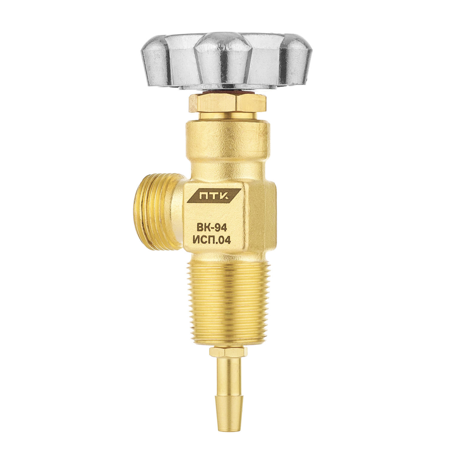 Вентиль баллонный ПТК ВК-94 (исполнение 04, ниппель) применяется в качестве запорного устройства на кислородных баллонах различных емкостей для предотвращения утечки газа и регулирования подачи кислорода. Вентиль можно использовать для баллонов с сжатым воздухом, азотом и другими неагрессивными газами.Вентиль чаще всего применяется для установки на кислородные баллоны емкостью от 5 до 40 литров с рабочим давлением не больше 20 МПа (200 кгс/см2). Резьба шпинделя смазана кислородостойкой смазкой ВНИИНП-283. Применение других смазок запрещено.Корпус вентиля изготовлен из латуни. Маховик регулировки подачи газа изготовлен из алюминия. Присоединительные размеры бокового ниппеля соответствуют ГОСТ 6357 и представляют наружную цилиндрическую резьбу G3/4-В. Установка на баллон осуществляется при помощи конической резьбы W27,8 по ГОСТ 9909.В нижней части корпуса имеется отверстие с резьбой М10х0,75 для установки ниппеля ⌀9 мм по резьбе М10х0,75 на вентиль ВК-94 исп. 04, на который крепится специальная трубка для смешивания смеси различных газов при заправке в баллон.В комплекте с вентилем входит ниппель, установленный по резьбе на вентиле ВК-94 исп. 04, на который надевается специальная трубка для смешивания смеси различных газов при заправке в баллон.Комплектация:Вентиль кислородный ВК-94 исп. 04 в сборе с ниппелем – 1 шт.Руководство по эксплуатации – 1 шт.